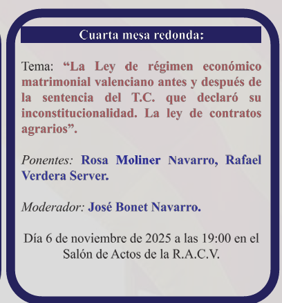 LA TERCERA MESA REDONDA SOBRE DERECHO CIVIL VALENCIANO ORGANIZADA POR LA RACV Y POR LA RAVJL.